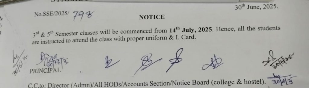 Class Start Notice for 3rd Sem & 5th Sem Student